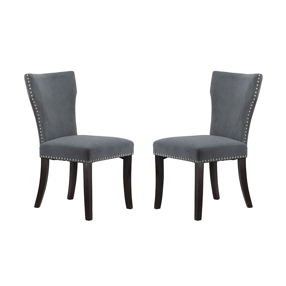 A&B Home 25″ x 37″ Set of Two Bundle of 7 Gray Velvet Armless Dining Chairs With Gold Nail Head Trim