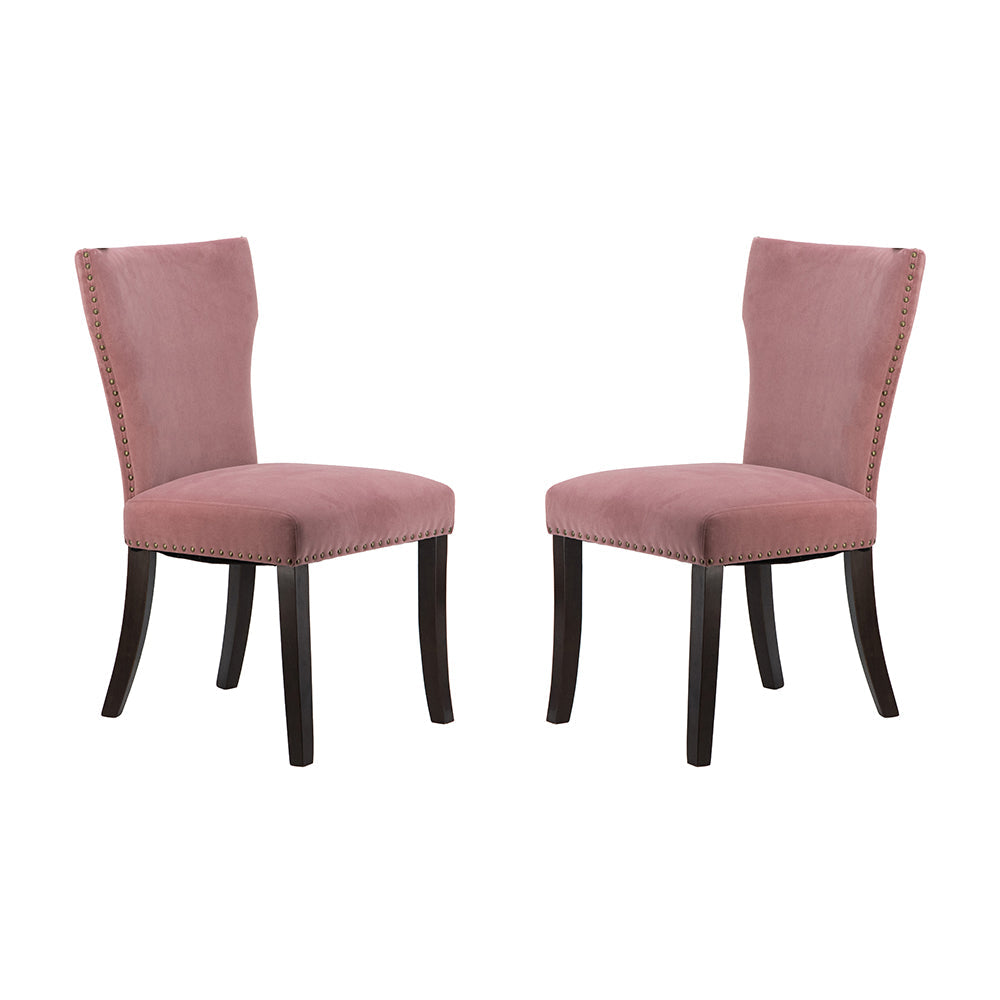A&B Home 25″ x 37″ Set of Two Bundle of 7 Pink Blush Velvet Armless Dining Chairs With Gold Nail Head Trim