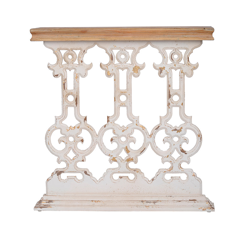 A&B Home Alcott 32″ x 32″ Bundle of 12 Warm Wood Top and Whitewash Console Table With Scrollwork Design