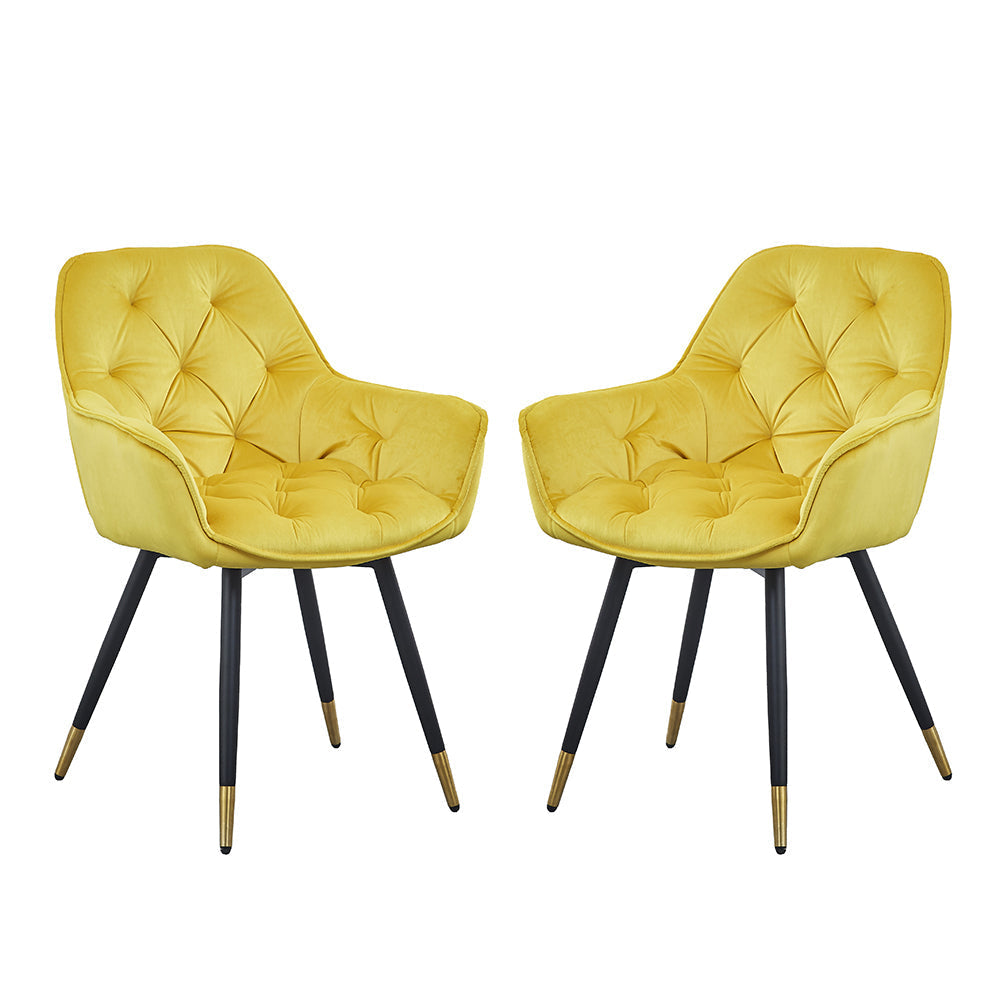 A&B Home Luppino 24″ x 34″ Set of Two Bundle of 7 Tufted Yellow Velvet Dining Chairs
