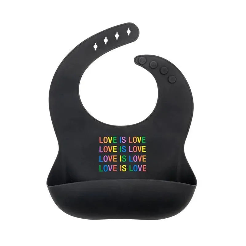 About Face Designs Soft Silicone Baby Bib All over Love is Love Print, Black